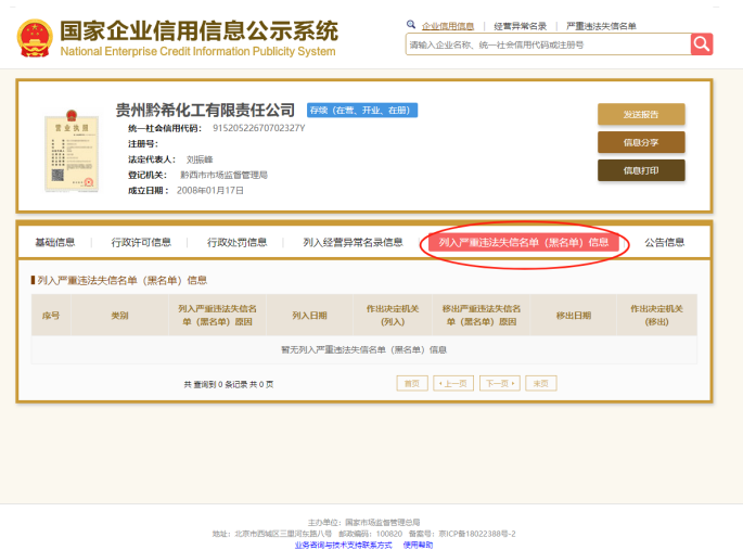 5.2在国家企业信用信息公示系统(******/)中列入严重违法失信企业名单(提供查询结果网页截图)
